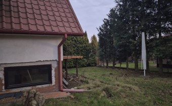 Na działce znajduje się dom dwupoziomowy (podpiwniczenie + wysoki parter), obecnie w stanie surowym zamkniętym.